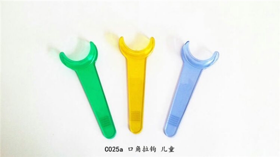 口角拉鉤(兒童)Tiff retractor(child)編號(hào):C025a材質(zhì):塑料性能:耐135度高溫高壓消毒,用于口腔拍照、檢查及其它操作毛重:10g顏色:藍(lán),黃,綠N0:C025aMaterial:plastics